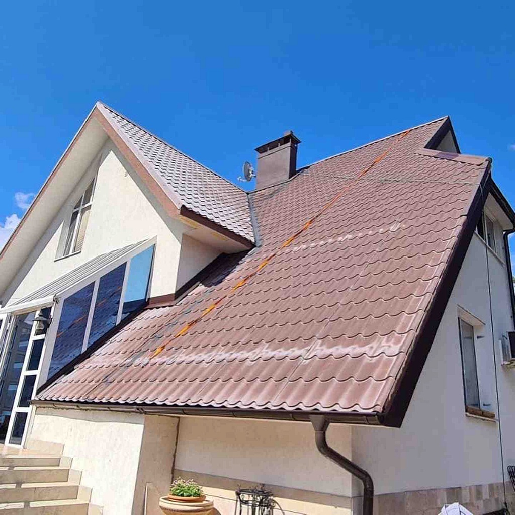 • Грунтовые работы над поверхностью крыши. Один из ключевых этапов проведения покраски крыши. Традиционно мы используем надежный грунт для покраски метала (грунт на основе алкидных пленкообразователей). Средством наносится с помощью покрасочного аппарата либо ручным инструментом (валик, кисть), учитывая сложность и объем работы.